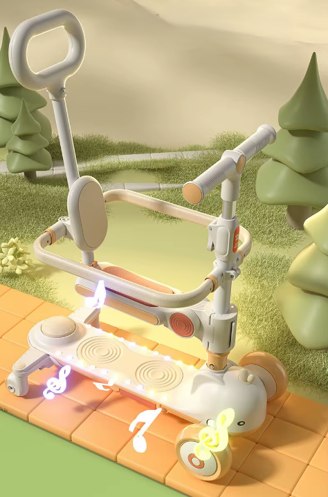 • Универсальность занимает центральное место в нашем многофункциональном детском самокате. Этот самокат, оснащенный быстросъемным мягким сиденьем, которое одновременно удобно и складно, плавно переключается между режимами сидения и стоя, в зависимости от предпочтений ребенка и уровня активности.